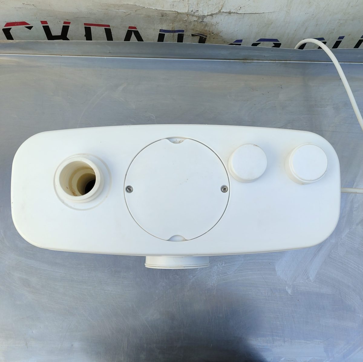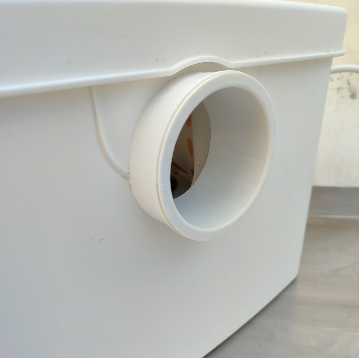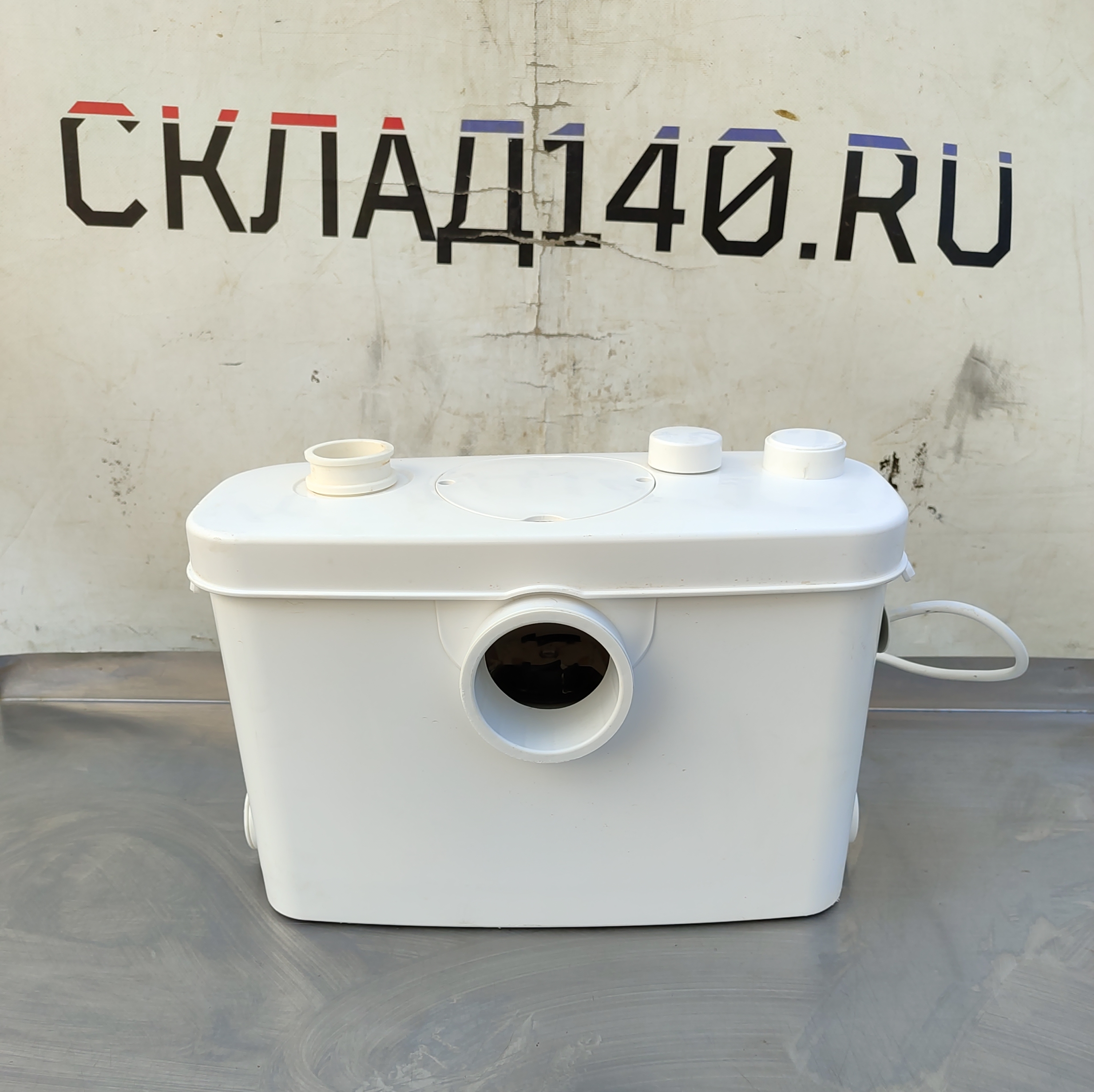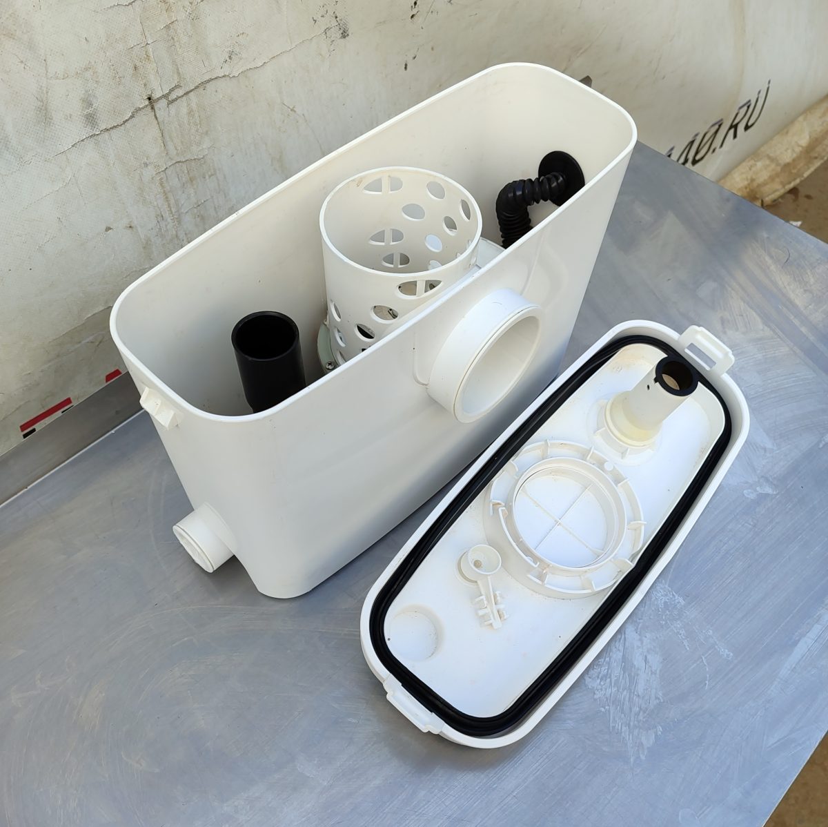 КНС оснащена фекальным насосом с измельчителем из нержавеющей стали и поплавковым механизмом для автоматического включения/выключения. Насос имеет термозащиту от перегрева. Установка выполнена из легко моющегося пластика. Имеет один основной вход Ø100 мм для унитаза, два отверстия (Ø40 мм) для других приборов и один опциональный вход. Выходное отверстие оборудовано обратным клапаном (патрубок 23/28/32/44 мм).
