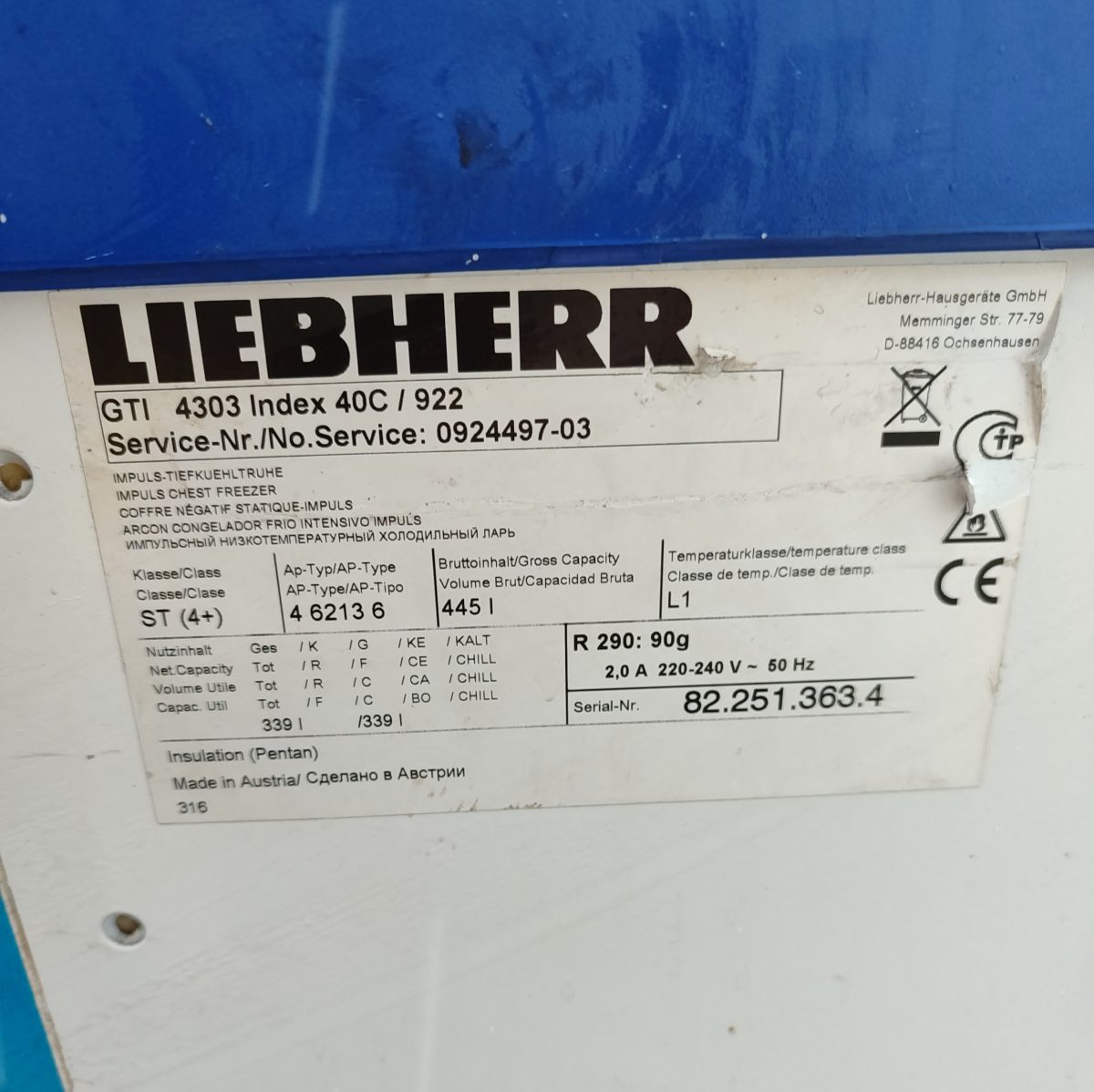 Морозильный ларь Liebherr GTI 4303 предназначен для демонстрации, заморозки и длительного хранения продуктов и полуфабрикатов на предприятиях общественного питания и торговли. Модель оснащена раздвижной крышкой из прямого стекла. Корпус выполнен из стали, покрытой порошковой краской, внутренняя часть корпуса – из алюминия, устойчивого к коррозии и механическим царапинам, рама – из ABS-пластика.