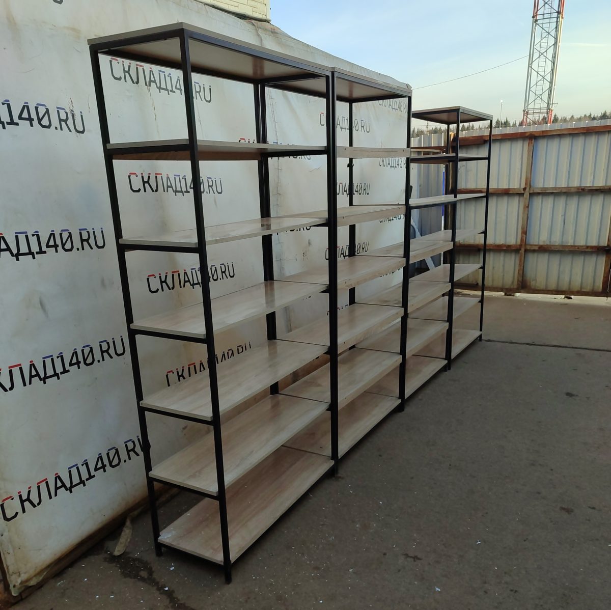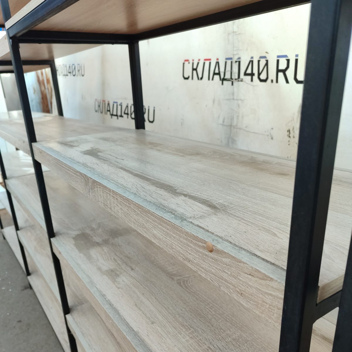 ОплатаСтеллаж торговый Стронг 400/40/201 бук 7 полок лдсп/сталь черный/дуб сонома (3с100/201, 1с100/140)