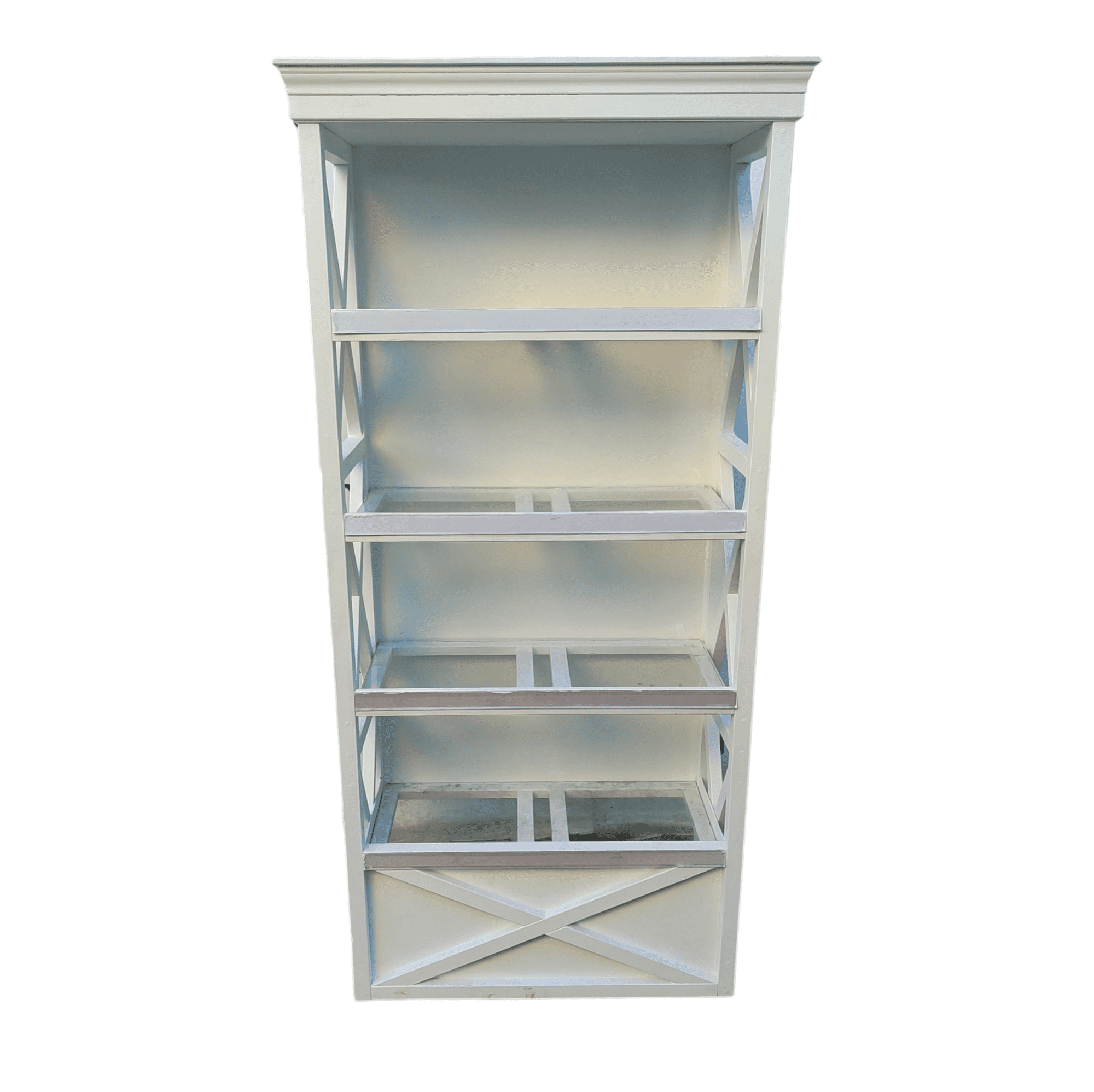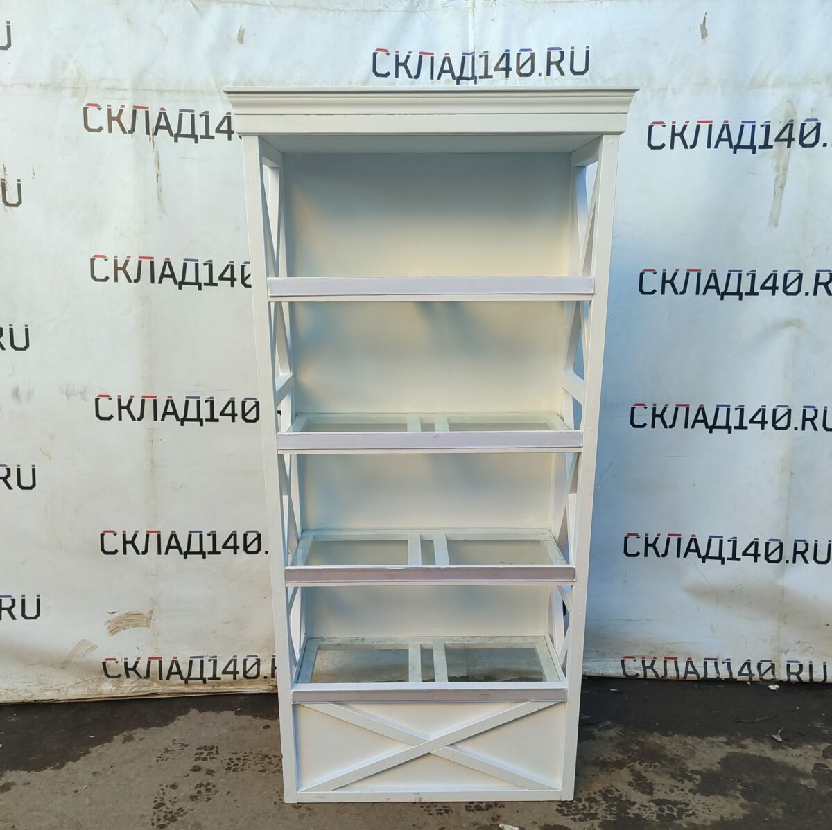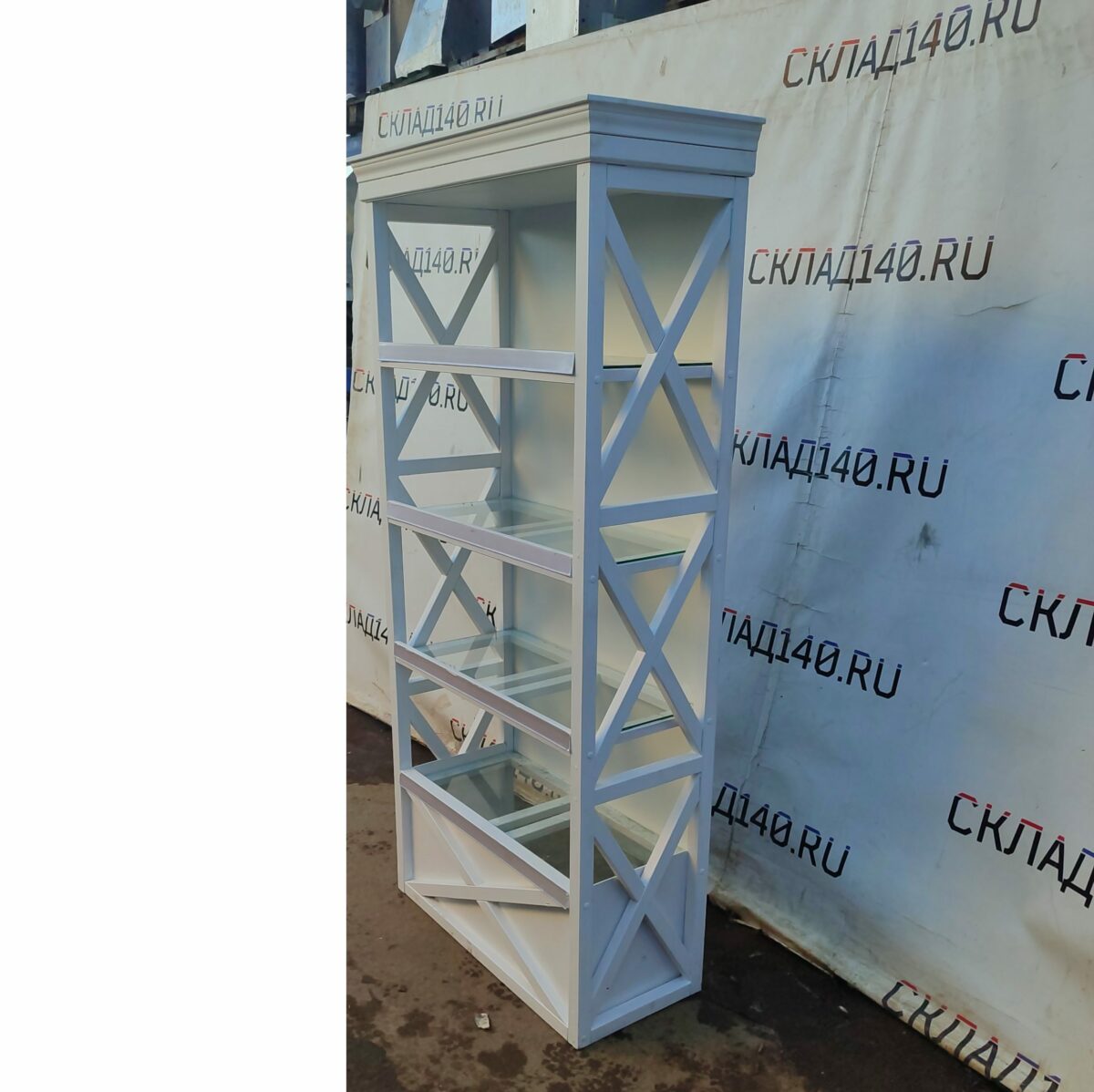 Стеллаж 96/43/200 дерево массив/стекло белый 4п