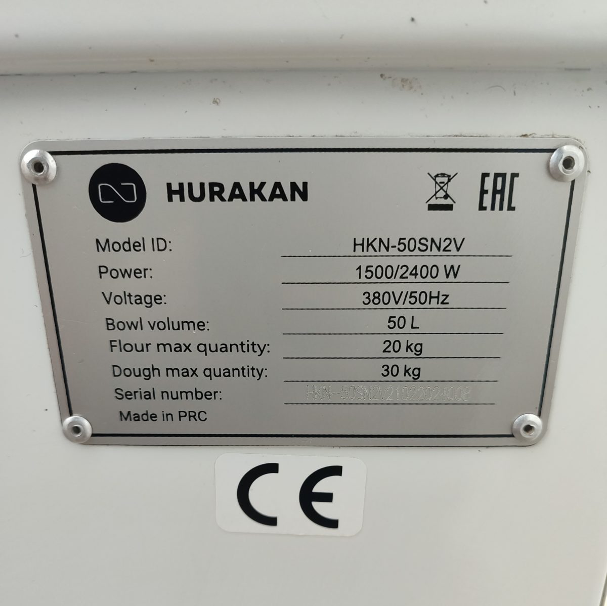 ОплатаТестомес Спиральный Hurakan HKN-50SN2V