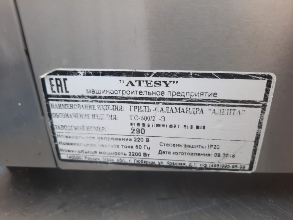 Основные характеристики: Гриль Саламандра Atesy гс-600/2-э алента