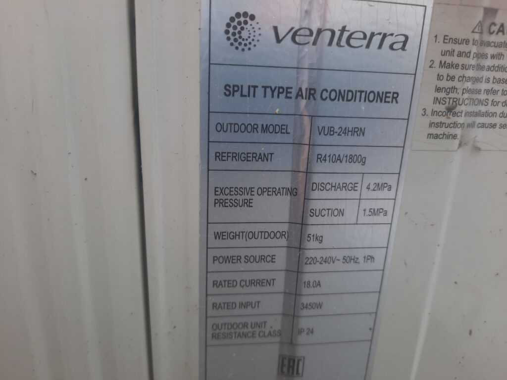 Основные характеристики: Кассетный кондиционер Ventera VUB-24HRN/VCC-24HRN1