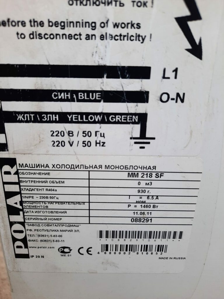 Холодильные машины POLAIR представлены широкими линейками моноблоков: среднетемпературных (тип ММ), низкотемпературных (тип МВ) и сплит-систем. Предназначены для охлаждения, замораживания и поддержания необходимого температурного режима во внутреннем объеме холодильных камер. Изготавливаются в соответствии с ГОСТ 23833-95 «Оборудование холодильное торговое» и предназначены для работы при температуре окружающего воздуха от +5°C до +40°C и относительной влажности не выше 80%. Холодильные машины состоят из двух основных блоков: испарительный блок, который размещается внутри холодильной камеры, и конденсаторный – снаружи камеры. В моноблоке наружный и внутренний блоки соединены в единую конструкцию теплоизоляционной прокладкой из пенополиуретана. Моноблоки устанавливаются в верхней части стены холодильной камеры.