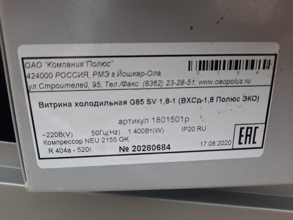 Основные характеристики: Витрина Carboma G85 SV 1,8-1 (ВХСр-1,8 ЭКО) холодильная